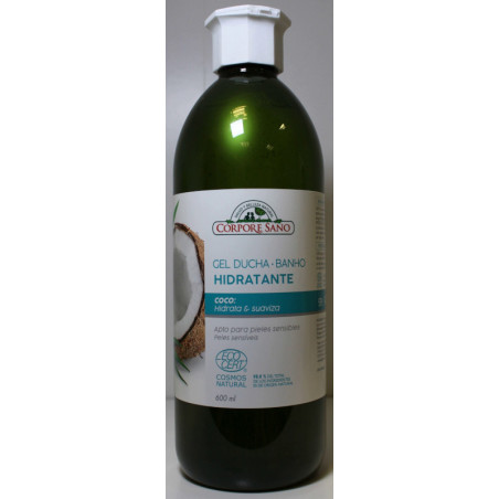 Gel de ducha y baño hidratante con coco apto para pieles sensibles. Hidrata y suaviza. 600 ml. Con certificado Ecocert. Vegan. Testado dermatológicamente.